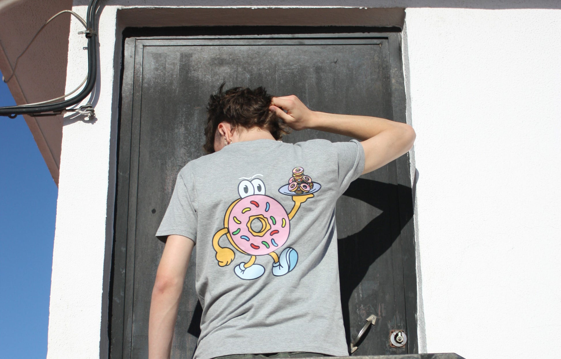 Camiseta unisex de corte oversize en color gris jaspeado, con estampado trasero del personaje “Glazzy”, el donut más icónico del universo Jelly. Confeccionada en algodón suave de alta calidad.